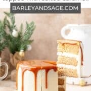 The best thing about this spiced eggnog layer cake, is that all you need to make it look beautiful is the salted caramel drip!