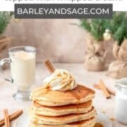 If desired, top the eggnog pancakes with whipped cream and a drizzle of syrup!
